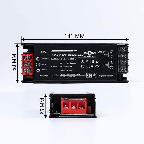 Блок питания BIOM Professional DC12 100W 8,3А в металлическом корпусе (BPX-12-100), 100024489