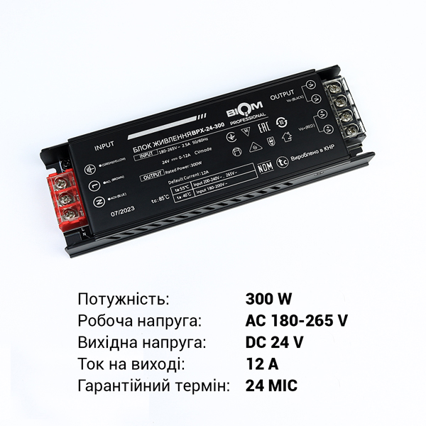 Блок питания BIOM Professional DC 24V 300W 12,5А в металлическом корпусе (BPX-24-300), 100023394