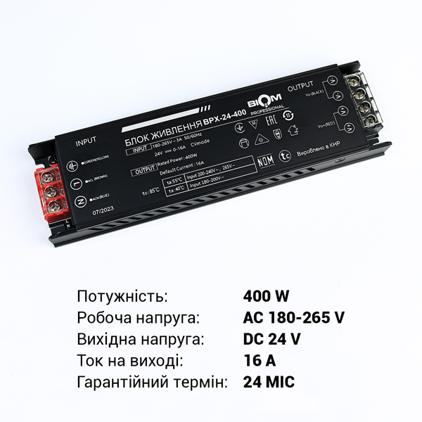 Блок питания BIOM Professional DC 24V 400W 16,6А в металлическом корпусе (BPX-24-400), 100023395