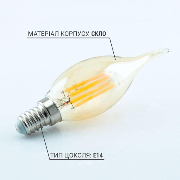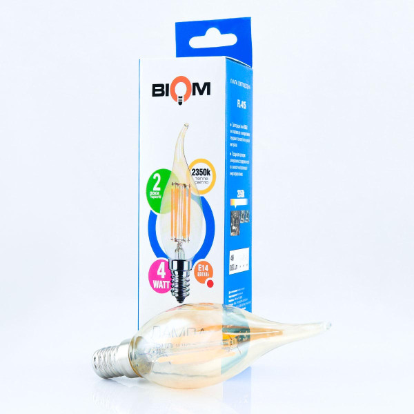 Светодиодная лампа Biom филамент BA35 4W 360Lm 2300-2500K 220V E14 Clear (Amber) (FL-415), 100012271