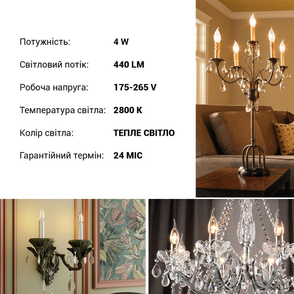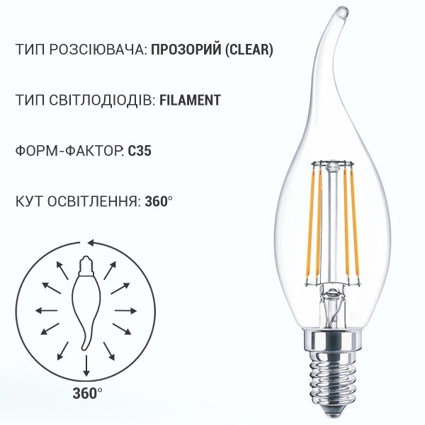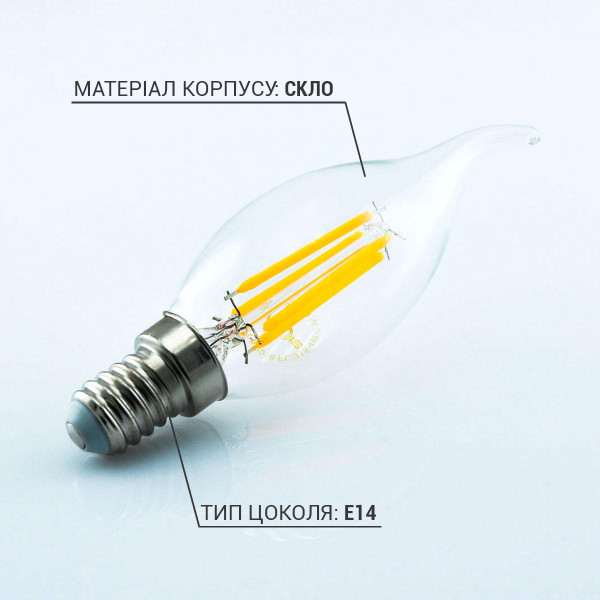 Светодиодная лампа Biom филамент BA35 4W 440Lm 2800-3200K 220V E14 Clear (FL-315), 100012270