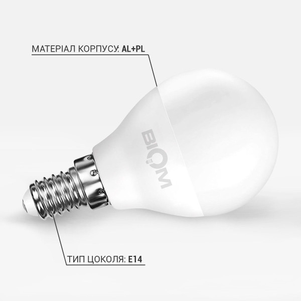 Светодиодная лампа Biom G45 4W 360Lm 3000K 220V E14 Frosted (BT-545), 100001415