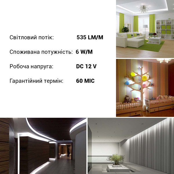 Светодиодная лента RISHANG 60-2835-12V-IP33 6W 535Lm 6000К 5м (RD0860TA-B-W), 100022365