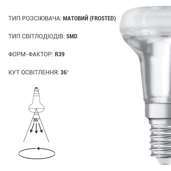 Светодиодная лампа OSRAM LED Star Reflector R39 1,5W 110Lm 2700K 230V E14 Рефлектор (4058075433243), 100022546