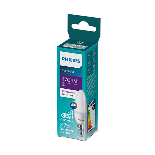Светодиодная лампа PHILIPS ESS LEDCandle 5W E14 470Lm 840 B35 NDFRRCA (929002968807), 100023674