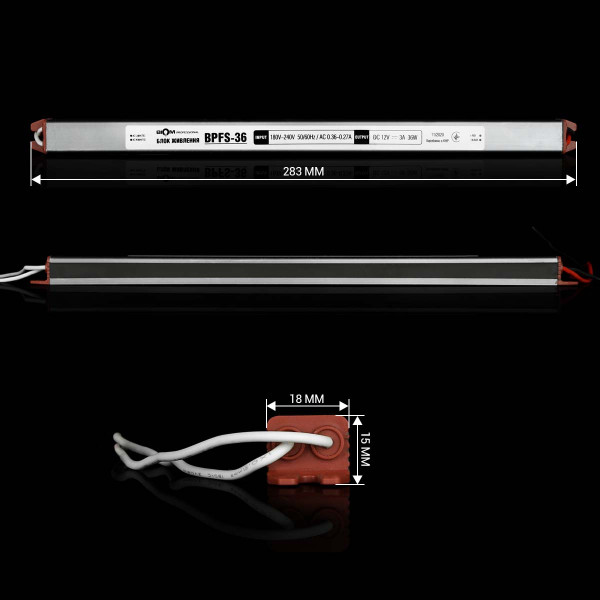 Блок живлення BIOM Professional DC 12V 36W 3А stick герметичний, в металевому корпусі (BPFS-36-12) , 100019656