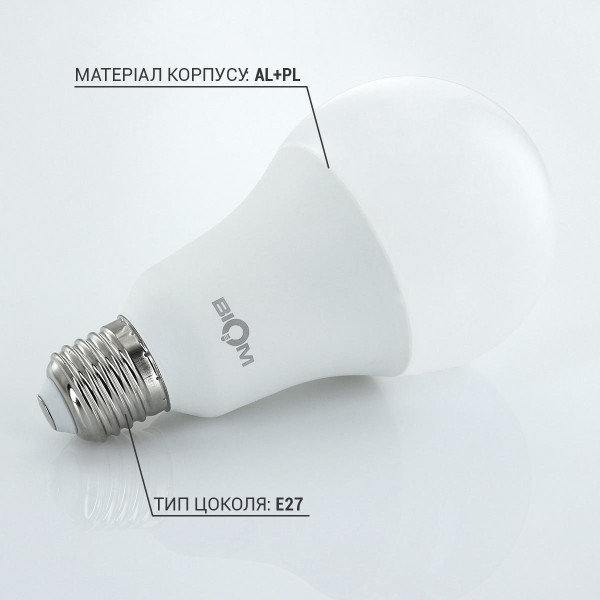 Світлодіодна лампа Biom A80 20W 1800Lm 4500K 220V E27 Frosted (BT-520) , 100014104