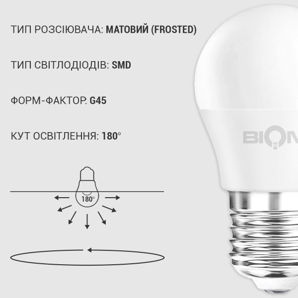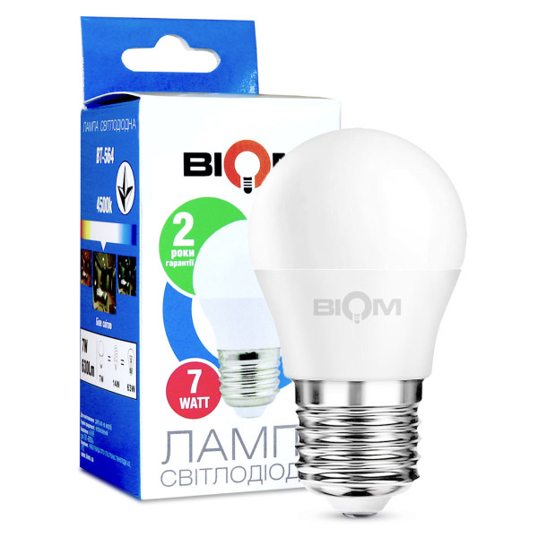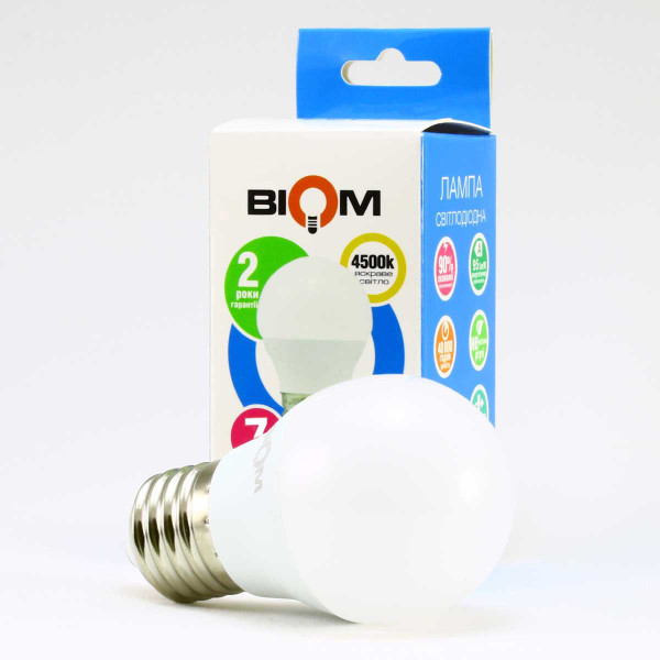 Світлодіодна лампа Biom G45 7W 630Lm 4500K 220V E27 Frosted (BT-564) , 100001418