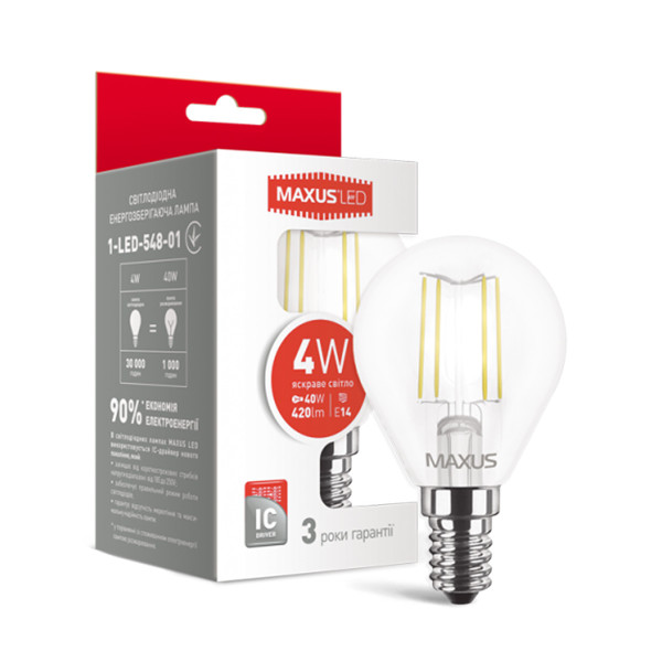 Світлодіодна лампа MAXUS філамент G45 4W 420Lm 4100K 220V E14 Clear (1-LED-548-01) , 100001683
