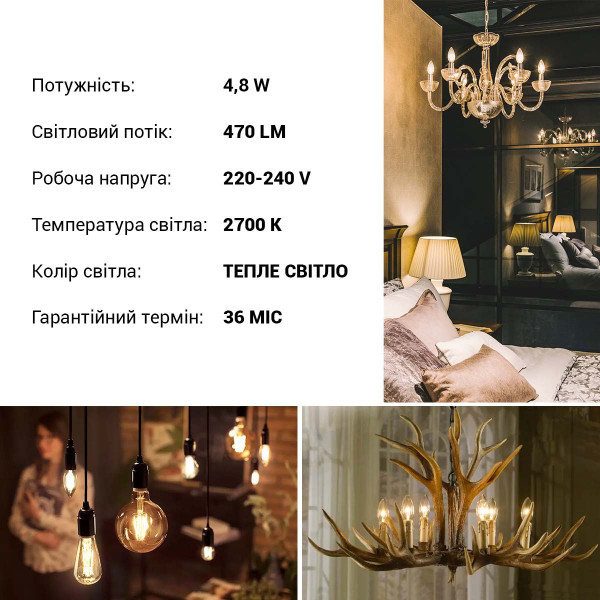Світлодіодна лампа OSRAM LED Classic Performance DIM Filament B35 4,8W 470Lm 2700K 230V E14 Прозорий (Clear) (4058075437043) , 100024098