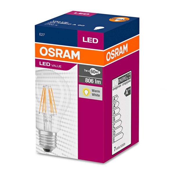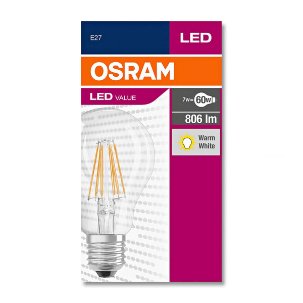 Світлодіодна лампа OSRAM LED Classic Value A60 6,5W 806Lm 2700K 230V E27 Прозорий (Clear) (4058075819658) , 100015259