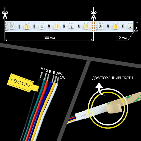 Світлодіодна стрічка Mi-light 60-5050-12V-IP20 24W 720Lm RGB+2400+6500К 5м (MI-LED-RGBW60CCT1220U) , 100014039