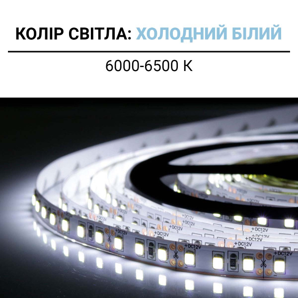 Світлодіодна стрічка OEM ST 2835-120-12V-IP20 14W 1500Lm 6000-6500К 5м (ST-12-2835-120-CW-20-V3) , 100014481