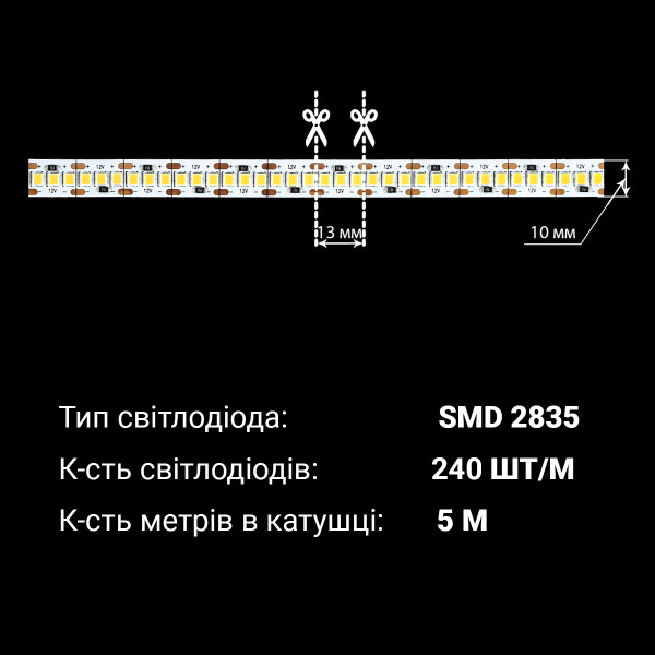 Світлодіодна стрічка OEM ST 2835-240-12V-IP20 20W 2300Lm 2800-3200К 5м (ST-12-2835-240-WW-20) , 100014487