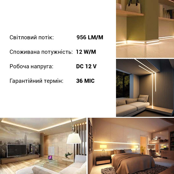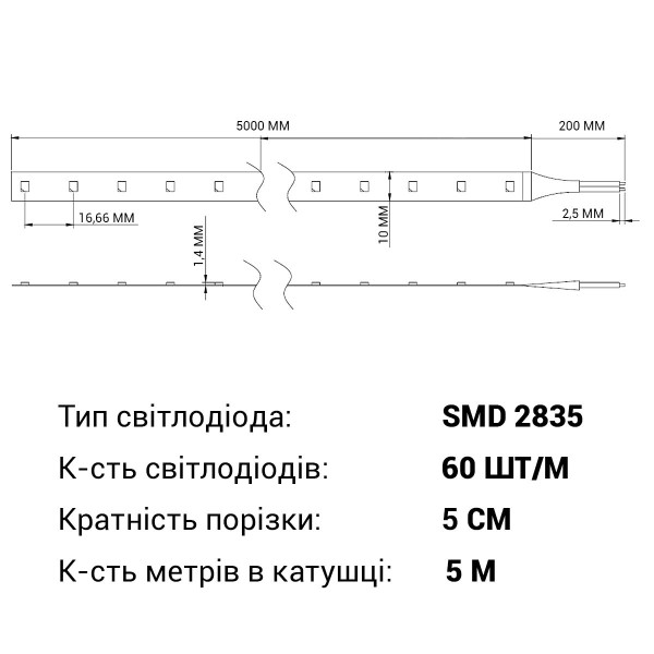 Світлодіодна стрічка RISHANG 60-2835-12V-IP20 12W 956Lm 4000К 5м (RN0060TA-A-NW) , 100022402