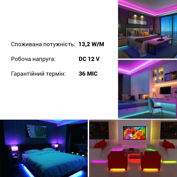Світлодіодна стрічка RISHANG 60-5050-12V-IP33 13,2W RGB 5м (RD0060AQ-RGB) , 100022339
